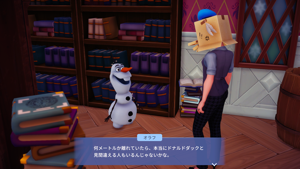 結局、アナがやるはずだったドナルド役を任されてしまい、よく分からない内にクエスト完了w エルサが作った雪雲をもらったけど家具扱いで常に自分の頭の上に雪を降らせてくれるアイテムじゃなかった。