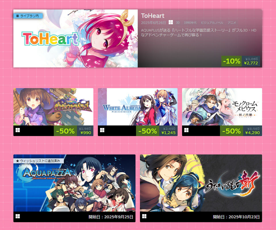 というか、パブリッシャーセールでアクアプラス作品がセール中です。