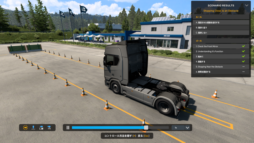 いつも数日ずれるアップデートですが、今回は同日アップデート。 難しいトレーラーバック等トレーラーの運転を練習出来るドライビングアカデミーという機能が実装されました! ゲーム本編内の機能ではなく、タイトル画面からアクセスし …